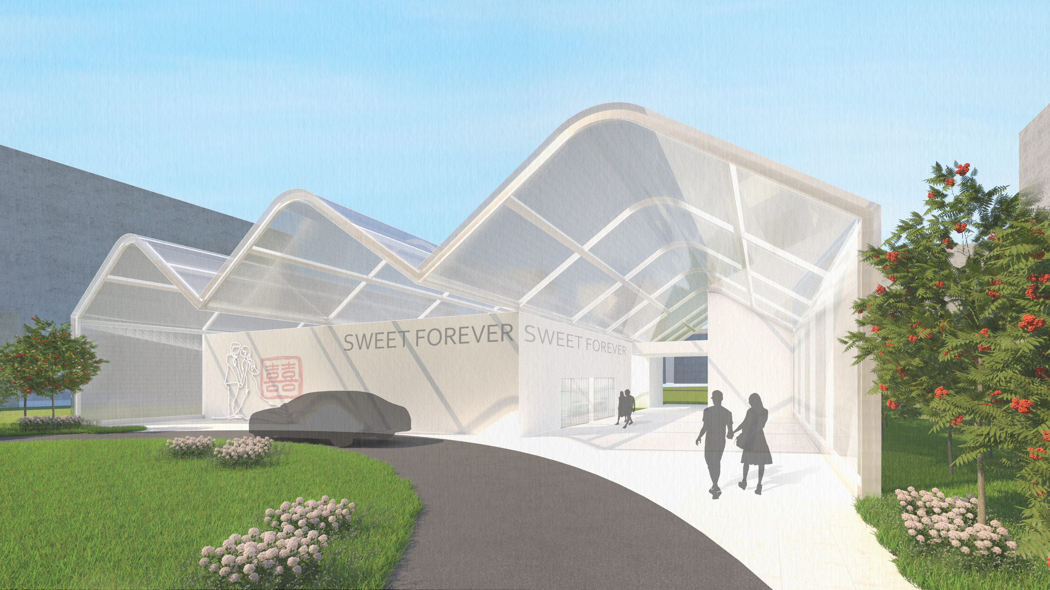 Couples visit this castle filled with imagination and expectation. Choosing a wedding cake is one of the most important parts of wedding preparation, and this dessert factory, which holds their dreams, makes many people's dreams come true. When the bride and groom visit this place, it feels like stepping into a fairy tale, with everything seemingly created just for them. The air is filled with the aroma of desserts, and the factory's dedication to making desserts can be felt even through the translucent glass walls. The factory is not just a cold machine; we want to create a warm and bright image to depict their stories together with visitors.