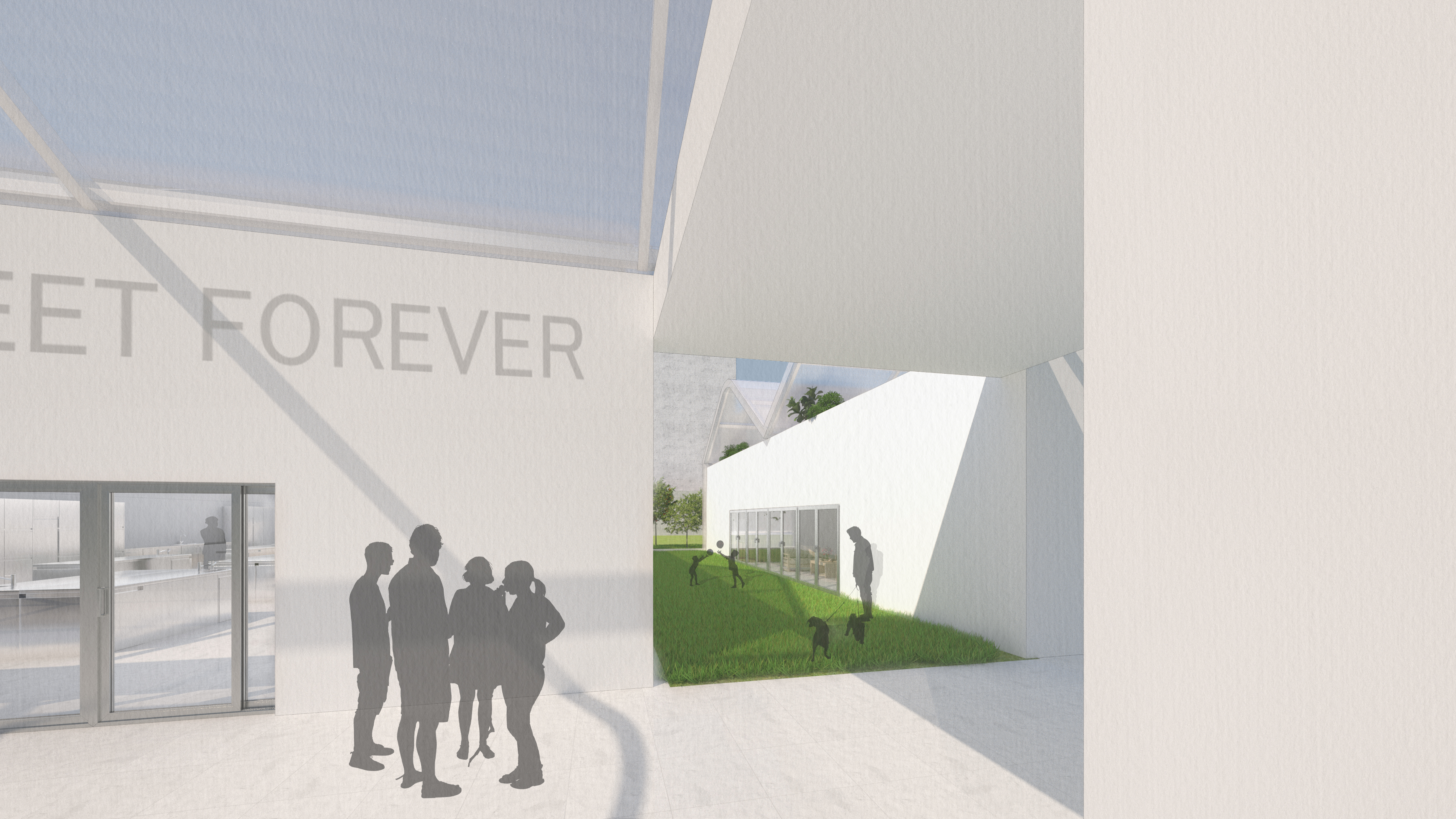 e. The transparency of the façade, which is just one person's height of transparent glass, serves as one of the ways of interaction between the interior and exterior of the building, making the spatial scale comfortable and easy to get close to.