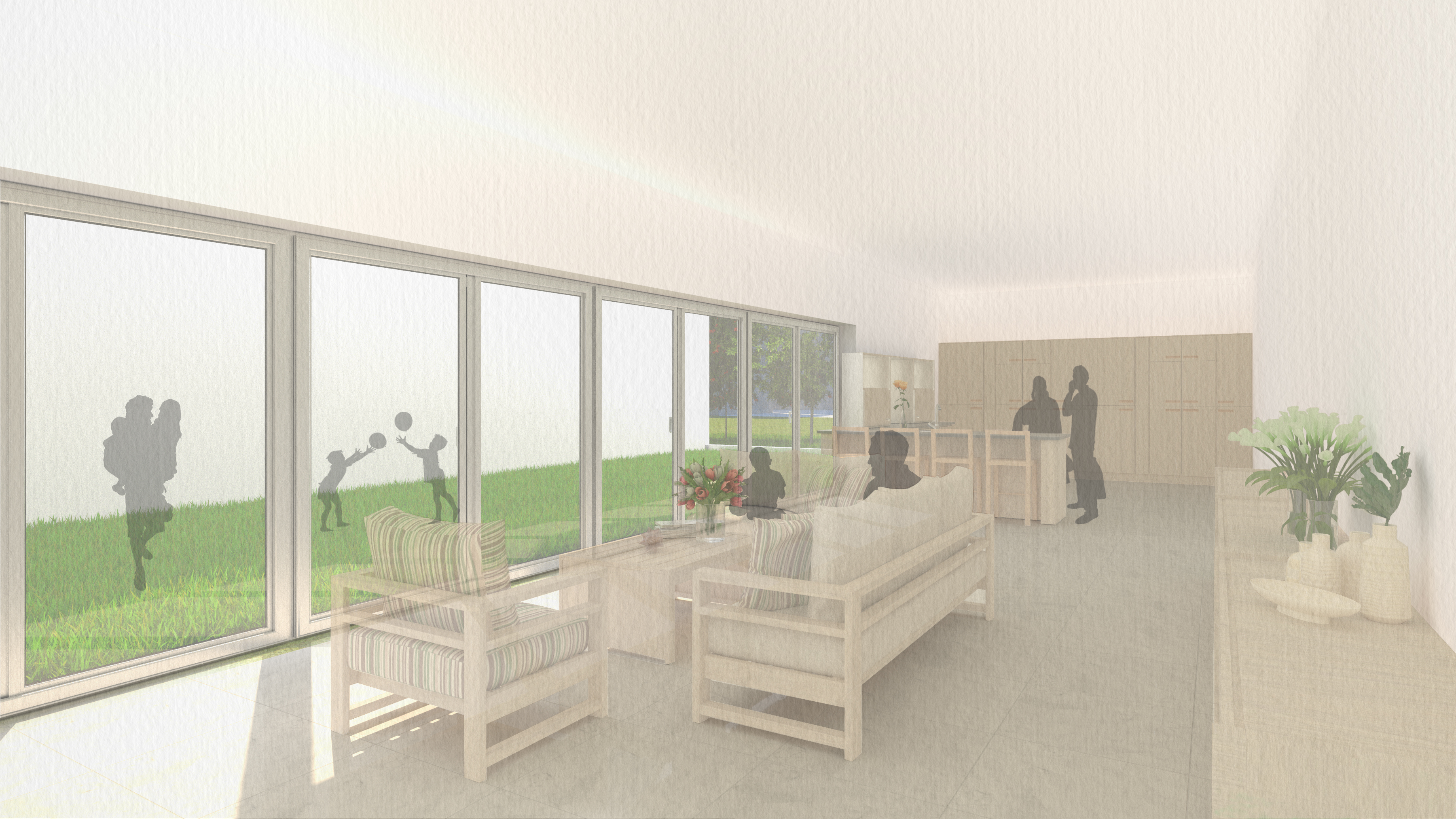 e. 立面產生的通透感,剛好是一個人高度的透明玻璃,做為室內外互動的其中一種方式,空間尺度舒適易親近。