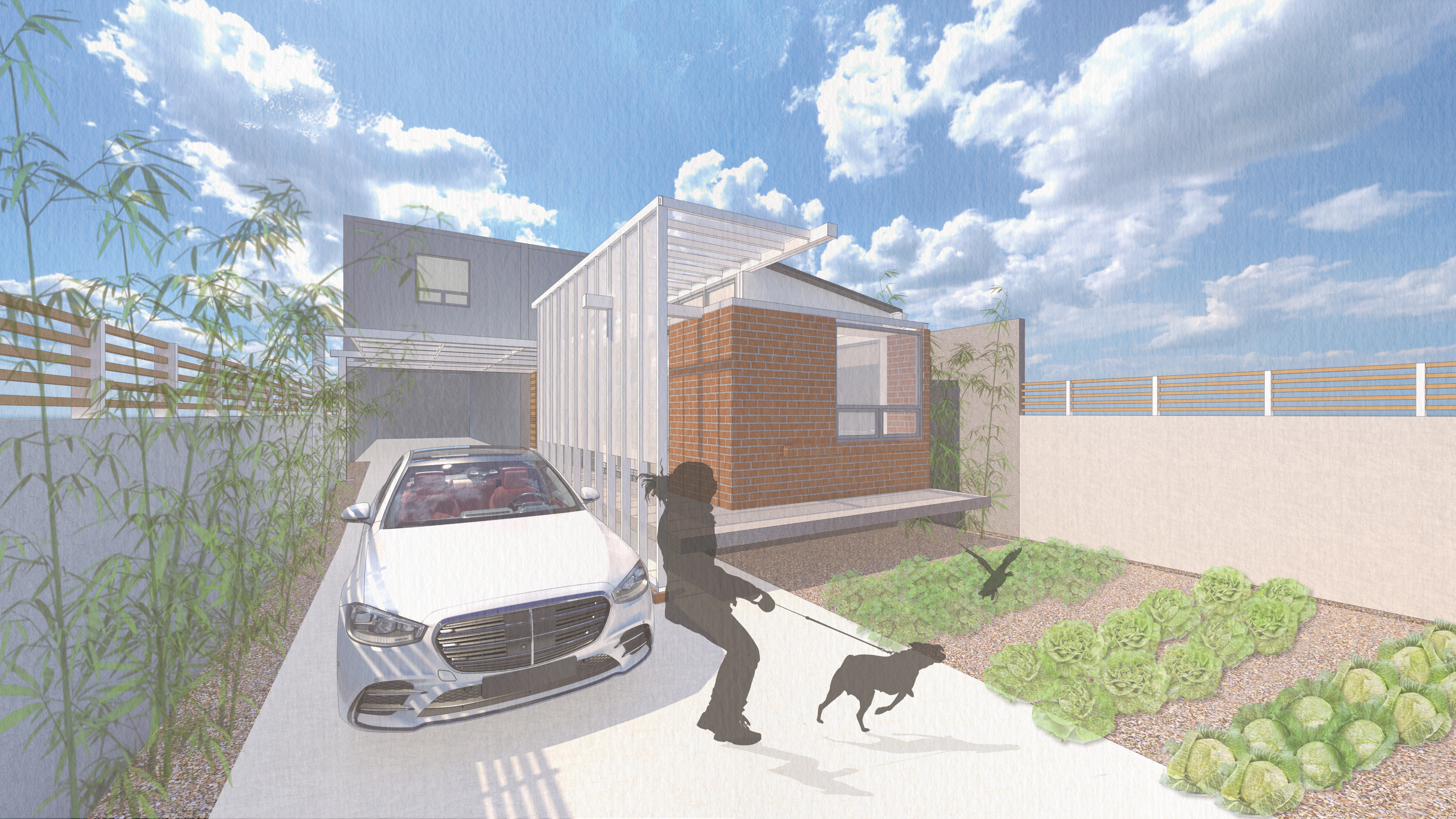 Daily traffic and factory production noise have become common occurrences in a busy industrial area. Adding a well-equipped and functional building between the house and the factory, next to the driveway, provides a more comfortable and convenient living environment for the elderly grandmother. It also allows the grandchildren, who come back from overseas, to have a space for family reunions.