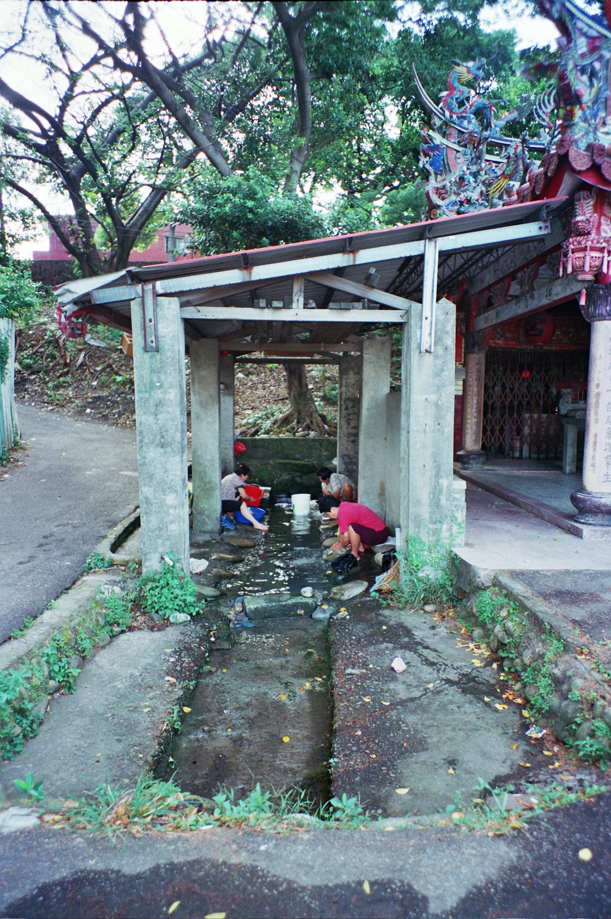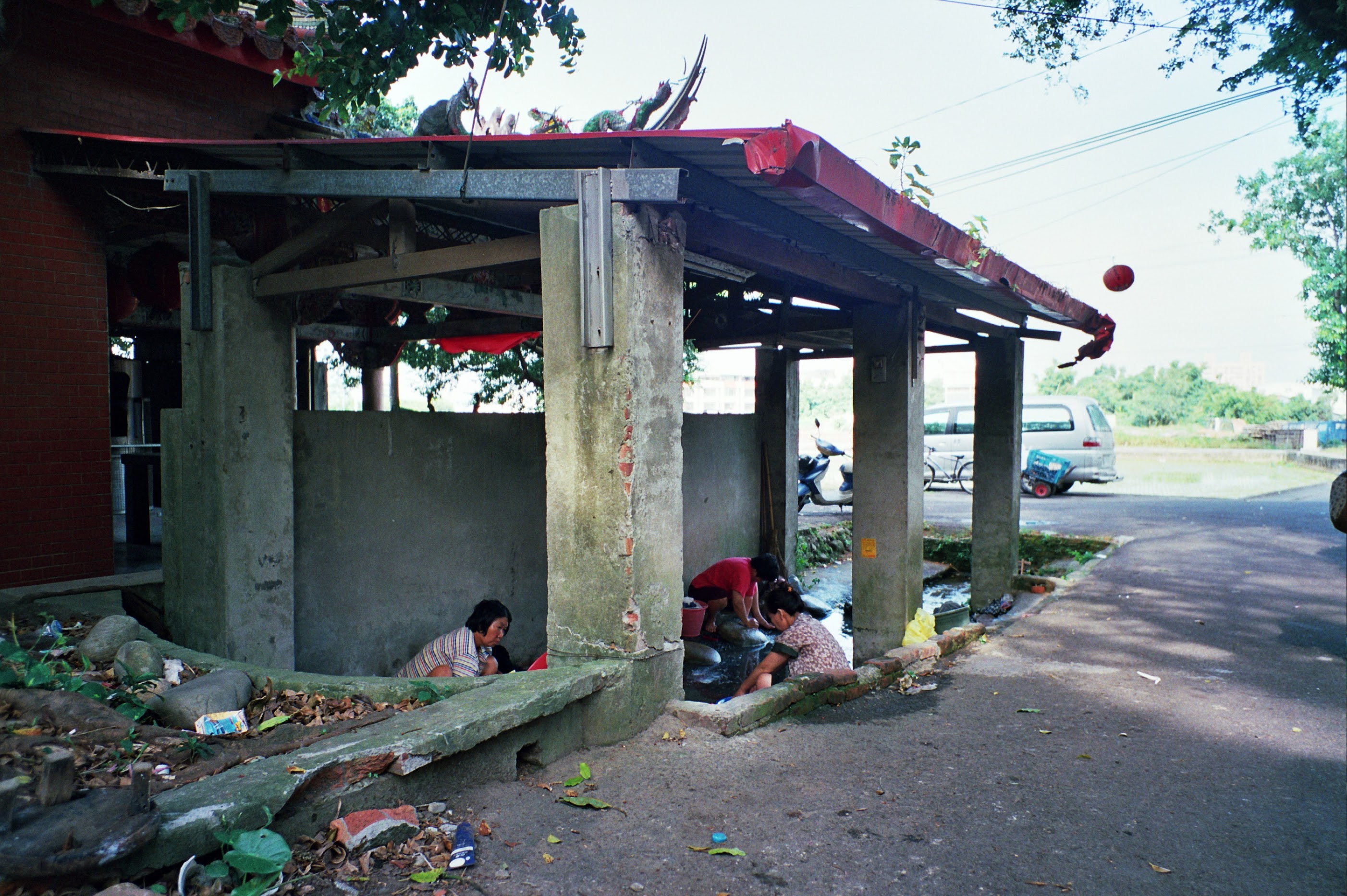 傳統洗衣板敲打著衣服的聲音,夾雜婆婆媽媽們話家常的笑聲,潺潺流水聲作為配樂,就此揭開序幕。 浣衣池是婦女們利用清澈山泉水洗衣的地方,霄裡的水質清澈、流量充足長年不斷。 居民洗衣、洗菜、取水、孩童戲水,共同使用浣衣池凝聚情誼,形成社區特色活動成為活化地方的開始。 交通工具停放小徑外,來到這拋開城市的喧囂感受霄裡的溫度,憶起或創造屬於自己與霄裡的回憶,從上游到下游,過去到未來,轉化的軸承以水流串起居民間的關係。 一號池,於福山宮旁,居民的信仰、精神的寄託,霧面玻璃區隔浣衣間與宮廟,通透性產生若即若離的空間,透過人的行為拉近關係,玻璃頂蓋讓陽光照攬浣衣間,象徵著人情的溫暖。 二號池,以石板地坪銜接湧泉池,保留舊有景觀與水道,石板橋於流水上方,小橋流水的意象增添歷史人文氛圍,讓來者體悟過去的生活型態。 三號池,於石母娘娘前,隨著石板階梯向下走回到了過去,在大樹樹陰下浣衣,徐徐微風從稻田吹拂而來,平台形成社區互動的場所,產生不同的使用機能。 地方DNA存在於長者身上,提供喚起回憶的空間,透過長者經驗的傳承將地方文化永久流傳。